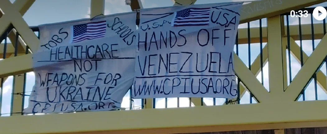 On Thanksgiving of this year CPI members in Minneapolis unfurled a “Hands Off Venezuela!” banner over a major highway.