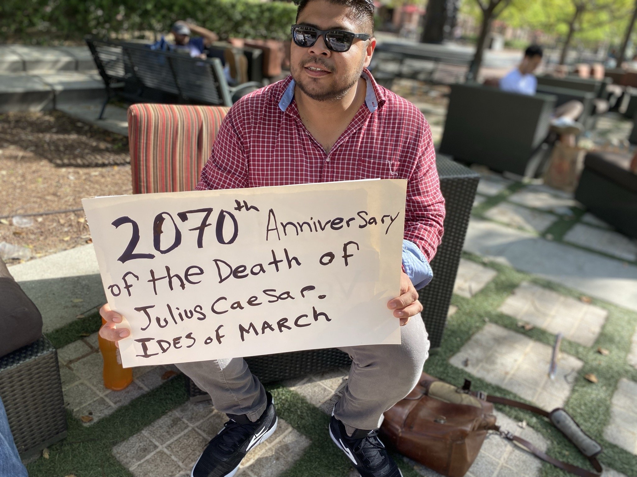 Passersby took note of the display, including signage marking the “2,070th anniversary of the death of Julius Caesar – Ides of March.” CPI members engaged in extended conversations with students and community members, discussing contemporary political issues such as the threat of nuclear war and drawing comparisons between the current US imperialism in our time and the crisis of the late Roman Republic.
