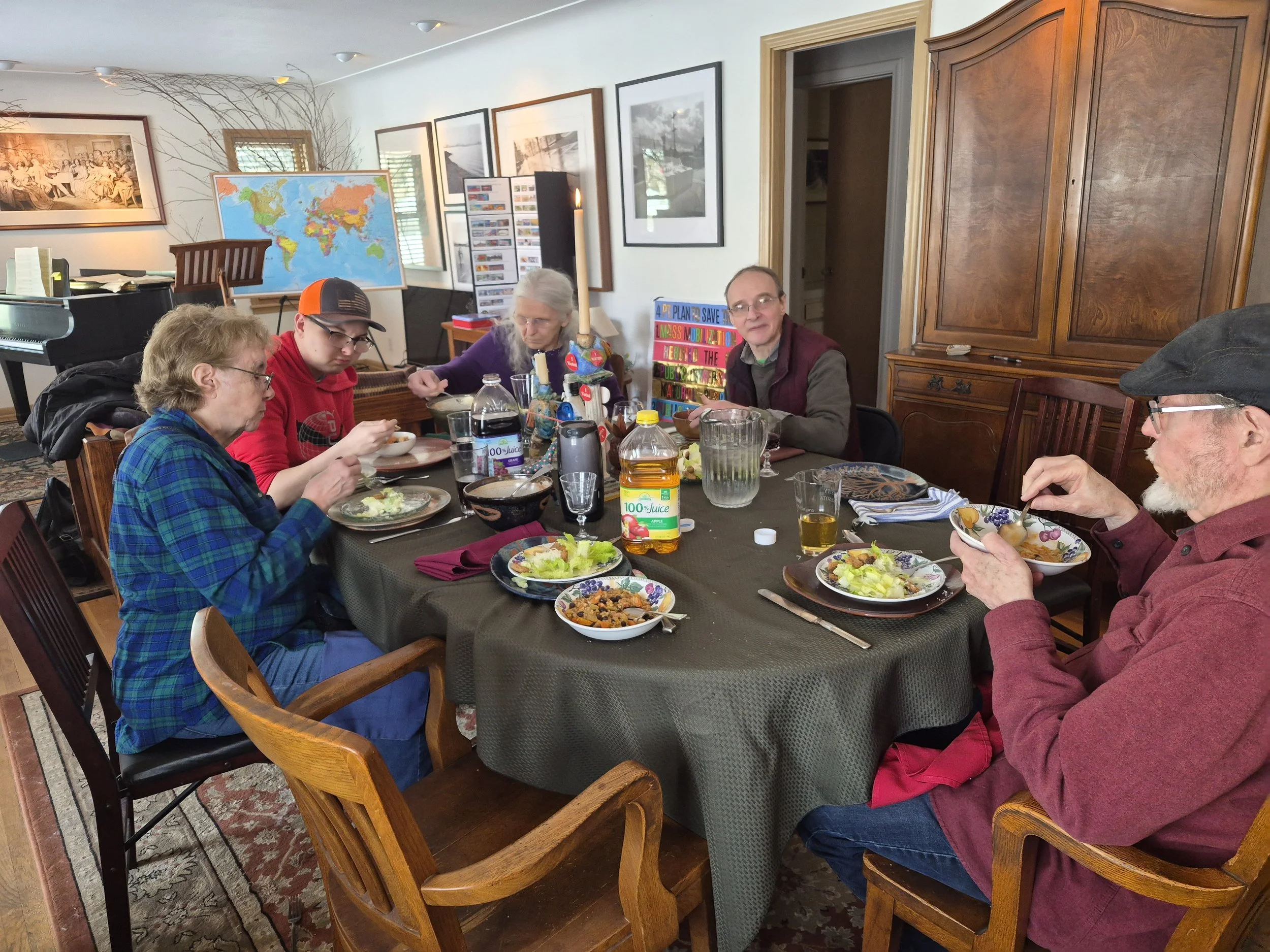 In Minneapolis, CPI hosted an Ides of March dinner gathering on March 18th, rescheduled from the 15th due to a major snowstorm. Friends and family members came together to enjoy a three-course Italian meal prepared by organizers, followed by homemade ice cream and an evening of discussion and music.
