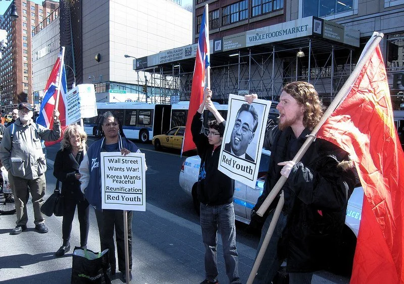 Caleb Maupin protesting with Workers World Party members to support North Korea in 2012.