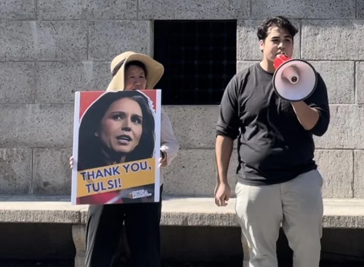 When Trump and Putin met in Alaska, we were in the streets in eight different cities loudly expressing our support for the peace talks. We also carried placards saying “Thank You, Tulsi!”
