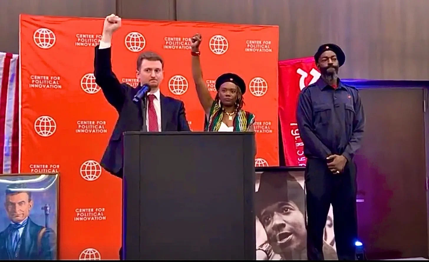 CPI was present at Trump’s inauguration, unfurling banners and distributing pamphlets, and having a reception at a nearby hotel. In February, our small workshop in Minneapolis was greeted by 15 Antifa protesters who blocked doors and defamed CPI as a “cult.” In July, the Center for Political Innovation convened its Great Unity Convention with over 200 people gathering in Chicago. The organization has launched street rallies to honor Ibrahim Traoré, the Anti-Imperialist leader of Burkina Faso.